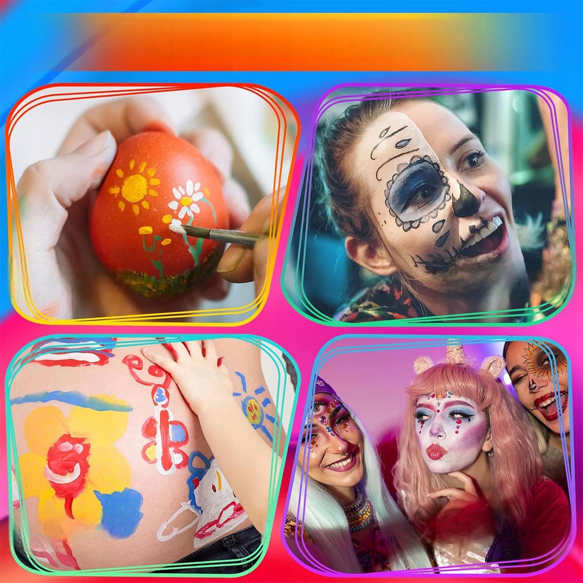 Ця карнавальна фарба для обличчя ідеально підходить для Хеллоуїна, карнавалу, Різдва, Великодня, дитячих днів народжень, вечірок з малюванням обличчя, косплею, художніх виступів тощо. Найкращий подарунок для дітей, дівчат.