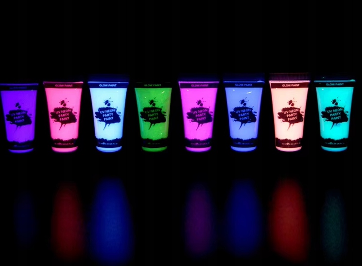 Люмінесцентний ефект: коли ви наносите різні кольори на своє обличчя чи тіло, вони світитимуться в УФ-світлі. Це неперевершена краса та веселощі, найважливіший елемент святкового вбрання!