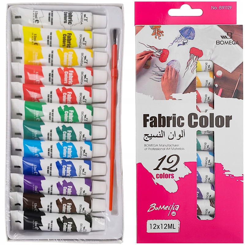 Фарби для тканини Bomega 12 кол.12 мл. Колір тканини