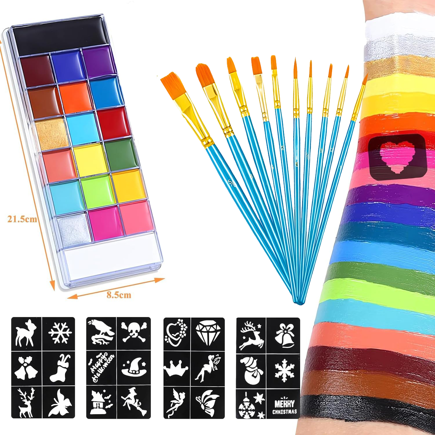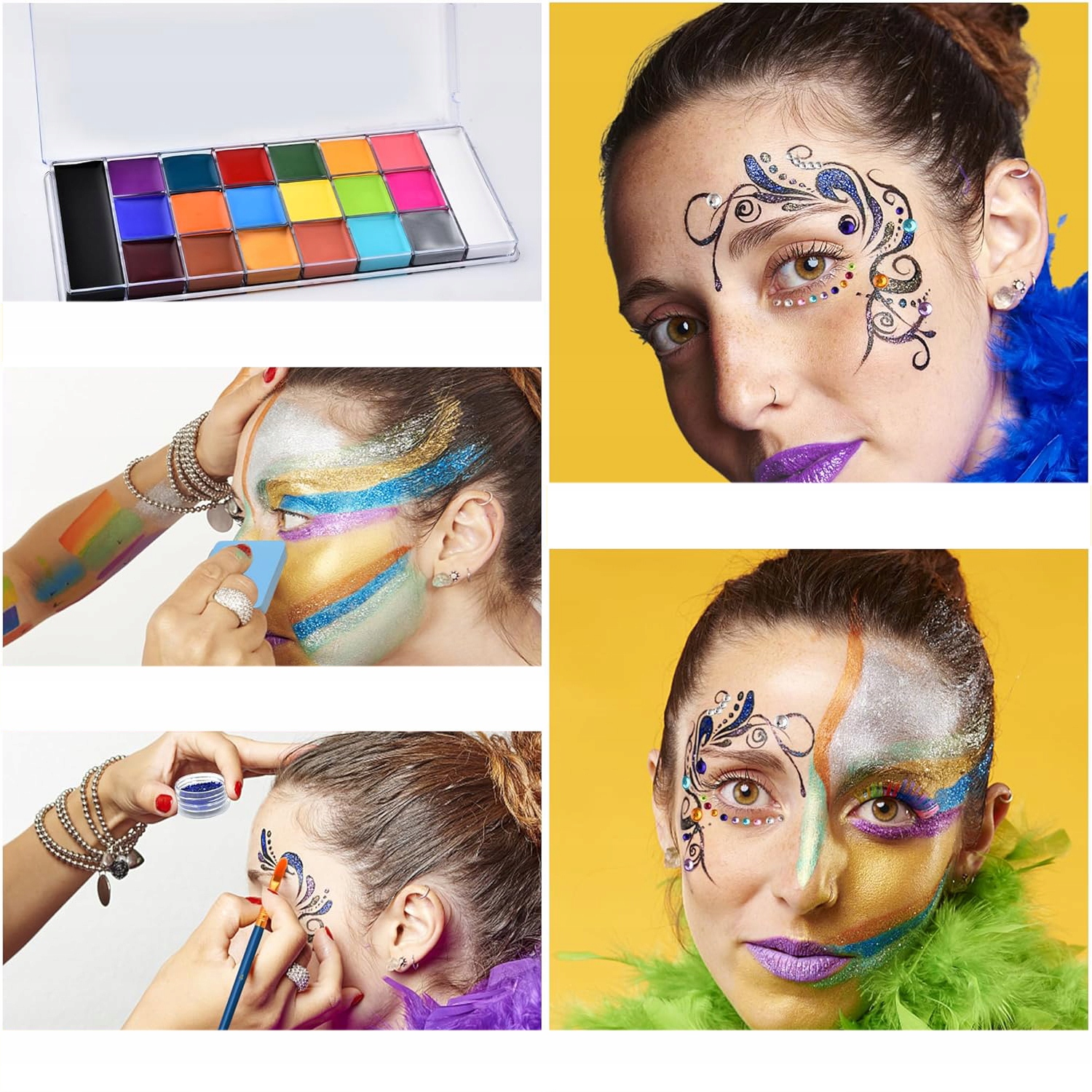 - 20 кольорів розпису обличчя та тіла, кольори можна легко розтушовувати, щоб створити різноманітний макіяж відповідно до потреб різних випадків