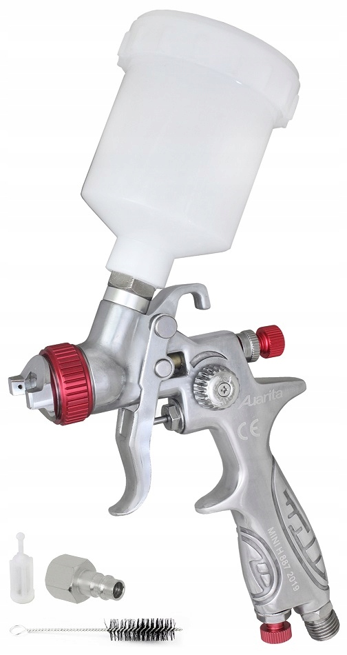 Фарбарський пістолет AUARITA MINI - це поєднання високої якості виготовлення та привабливої ціни. Модель пістолета високого тиску HP. Поєднання компактного розміру з міцністю та ефективністю системи HP забезпечує ефективну передачу матеріалу. Система HP означає менше споживання повітря при більш високому робочому тиску.
