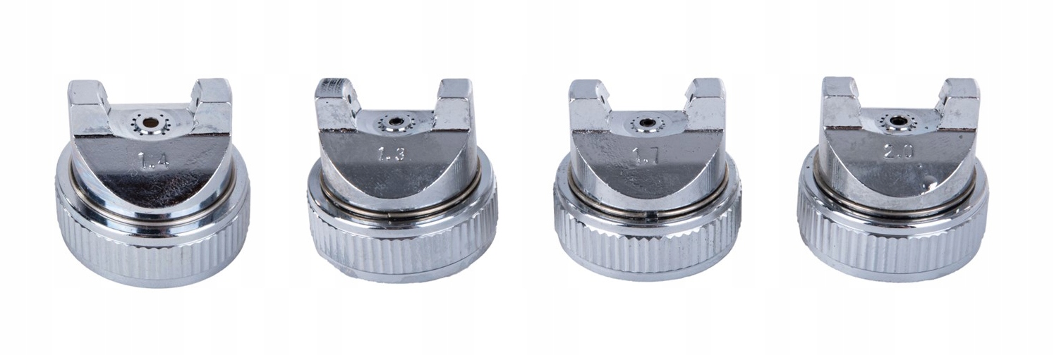 - Розмір сопла: 1,3 мм / 1,4 мм / 1,7 мм / 2,0 мм - виберіть відповідний розмір залежно від типу та щільності фарби.