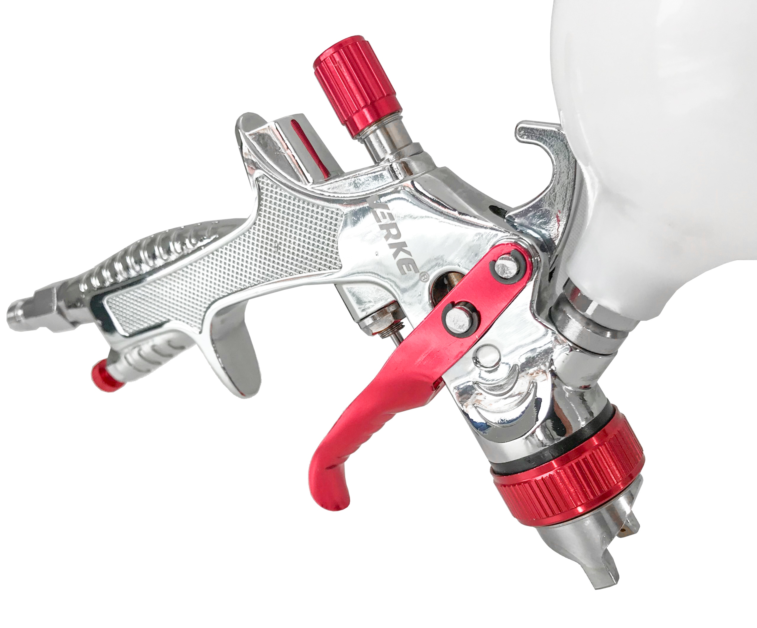 Високоякісні пістолети низького тиску HVLP від Verke відрізняються професійним дизайном і високою точністю нанесення фарби . Відмінна розпиленість, швидкість роботи, ергономічність і найвища якість виконання - їх найважливіші переваги. Вони призначені для використання в різних видах діяльності та сферах. Якісна насадка і голка з нержавіючої сталі і можливість трьох регулювань забезпечують повний контроль над роботою. Пістолети Verke відрізняються ергономічною і легкою рукояткою, що дозволяє довго і комфортно працювати.