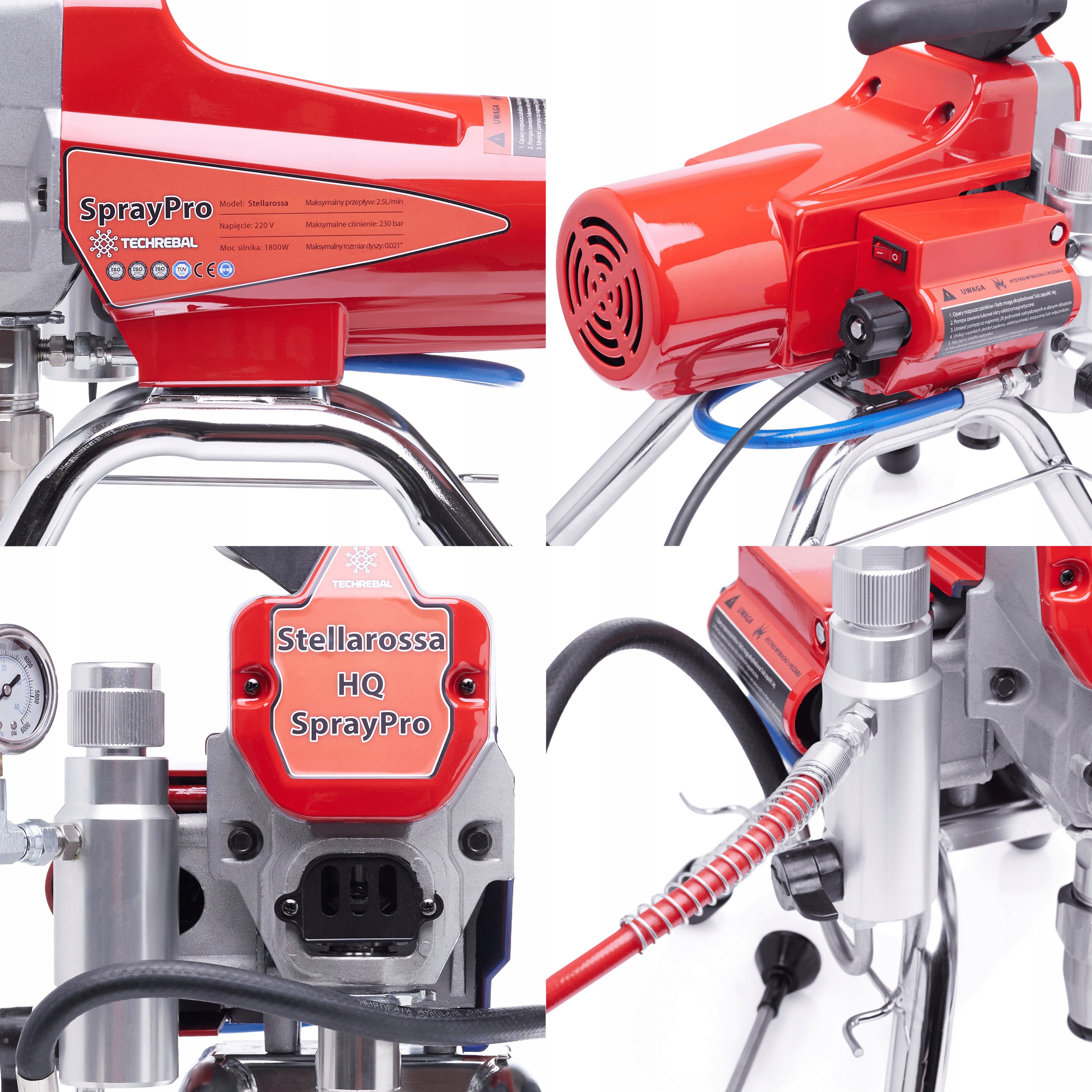 ГІДРОДИНАМІЧНИЙ ПОРШНЕВИЙ ФАРБУВАЛЬНИЙ ГЕНЕРАТОР STELLAROSSA 1800 Вт ШЛАНГ СОПЛА ДЛЯ ПІСТОЛЕТА 8 м ЛАНЦЯ 50 см