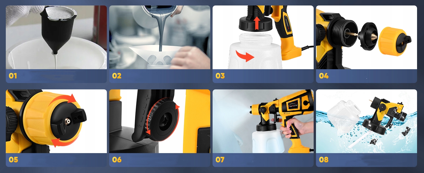 - Завдяки функції розбирання сопло та контейнер можна легко зняти, а залишки фарби можна очистити щіткою та голкою, щоб запобігти їх засміченню.