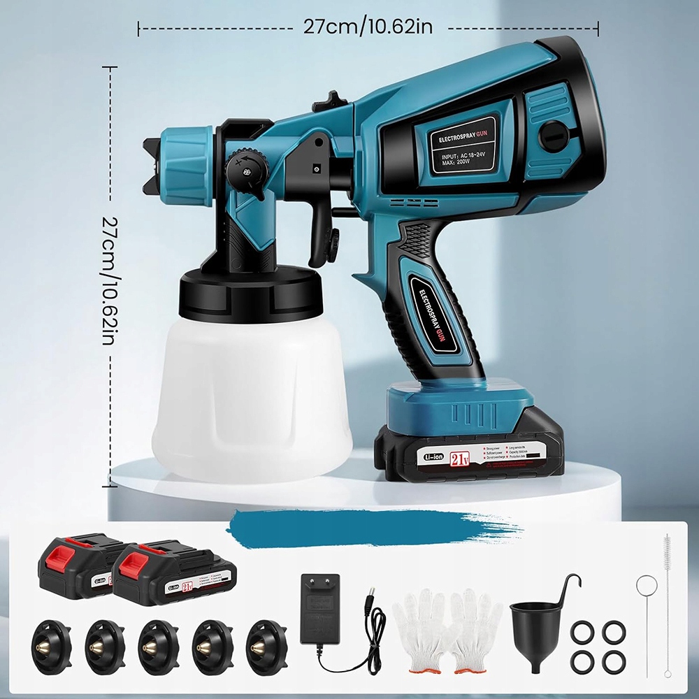 Ця система розпилення фарби оснащена двома батареями ємністю 3000 мАг для довшого терміну служби.