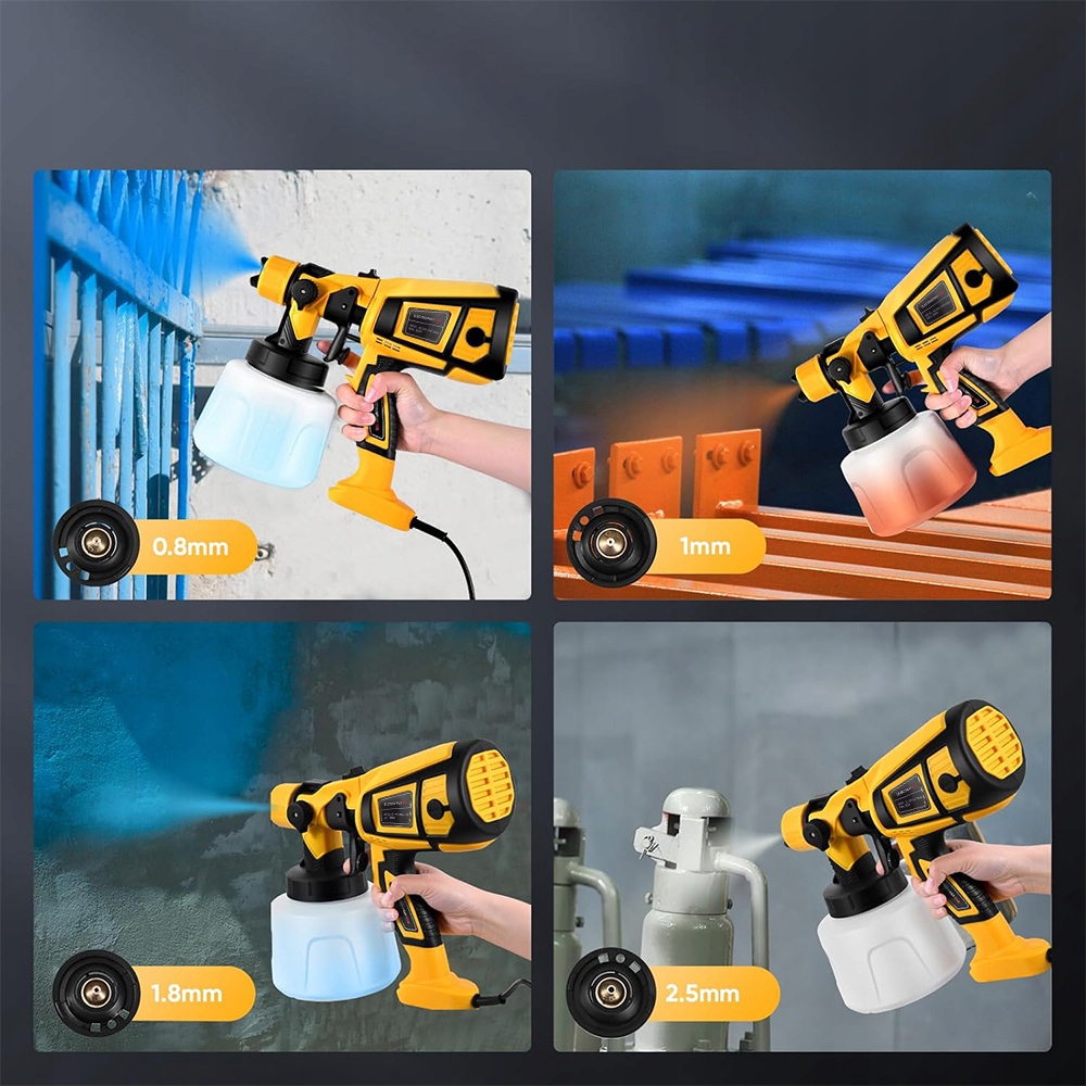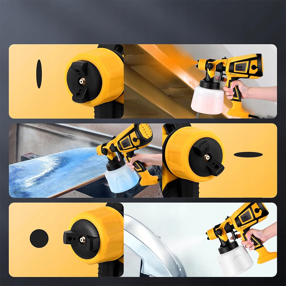 Цей електричний пістолет-розпилювач можна налаштувати за трьома різними розпилювачами (горизонтальним, вертикальним і круговим) відповідно до форми об’єкта, який ви малюєте.