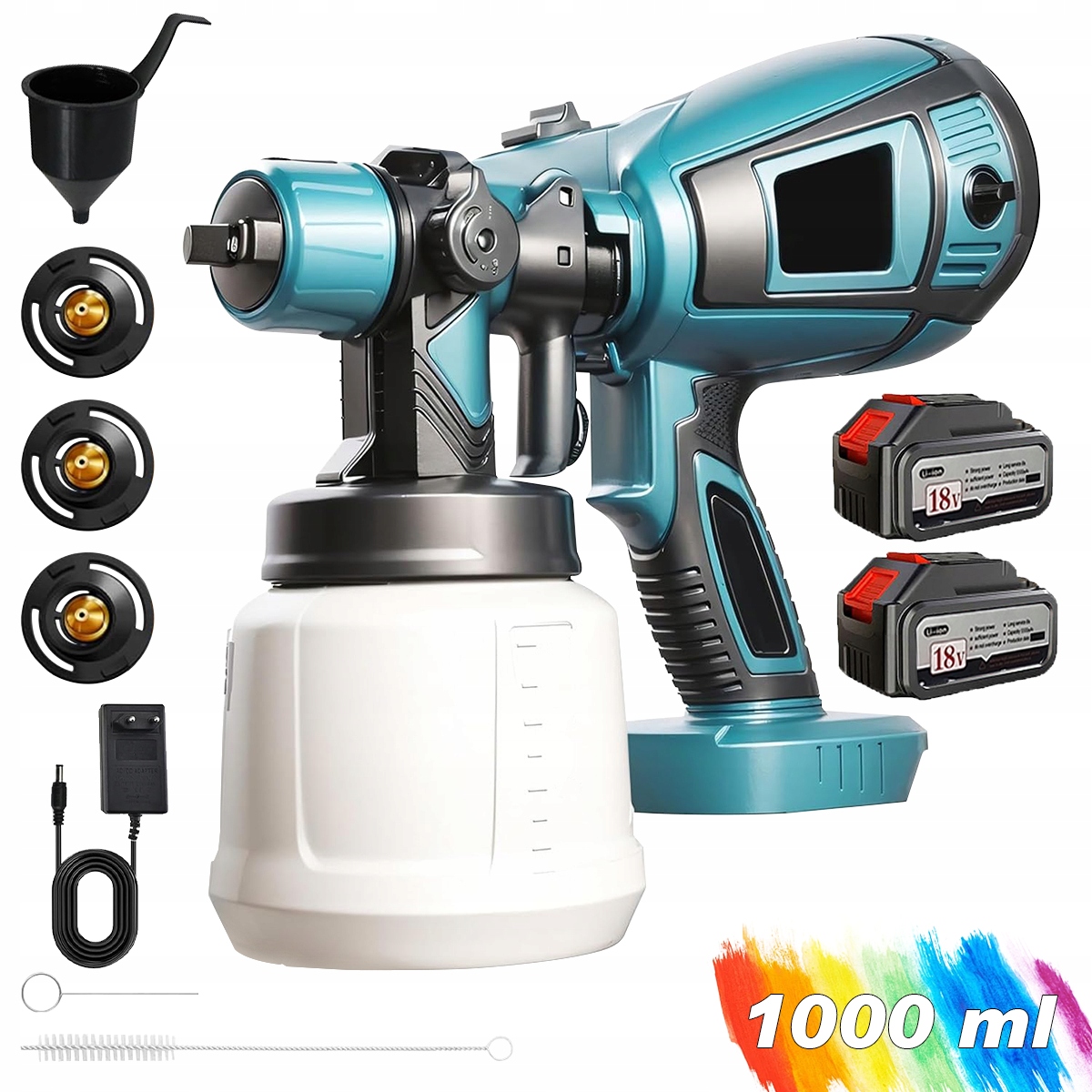 Акумуляторна система розпилення фарби, заміна безщіткового електричного розпилювача Makita з 2 насадками, 3 схемами розпилення, розпилювач на 1000 мл, для фарбування стін