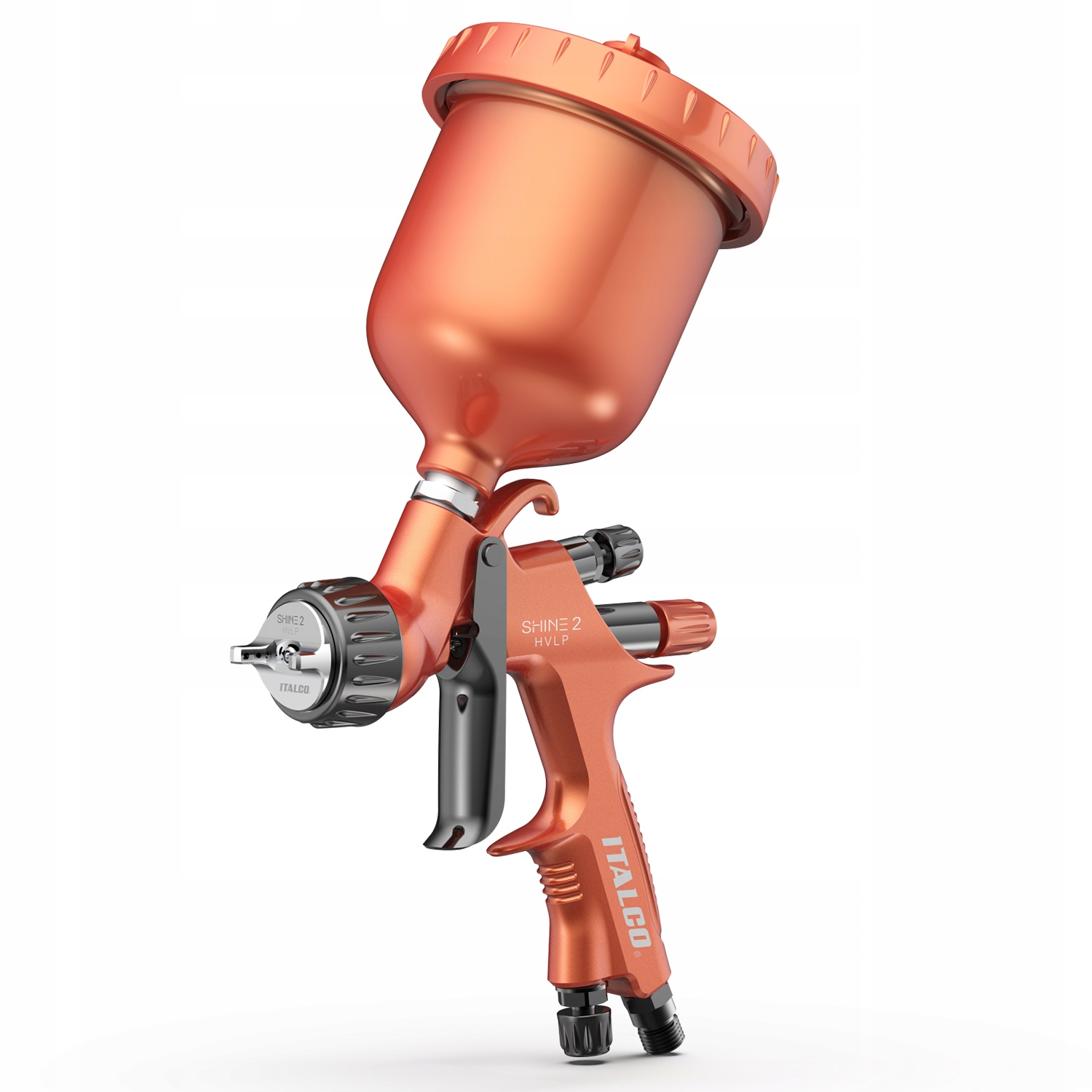 Фарбарський пістолет ITALCO SHINE 2 HVLP — професійний інструмент, призначений для точного фінішного фарбування та лакування. Ідеально підходить для роботи з лаками, фарбами на водній основі та покриттями для автомобілів середнього та високого класу.