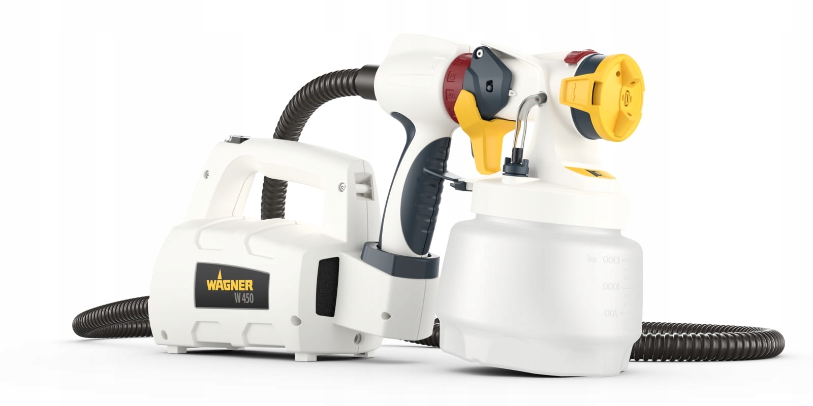 W450 — єдиний продукт у асортименті пістолетів для фарбування стін і стель. що працює в окремій системі турбіни. Фарбування лише пістолетом полегшує маневрування, а окрема турбіна зменшує навантаження на руку, підвищуючи комфорт використання.
