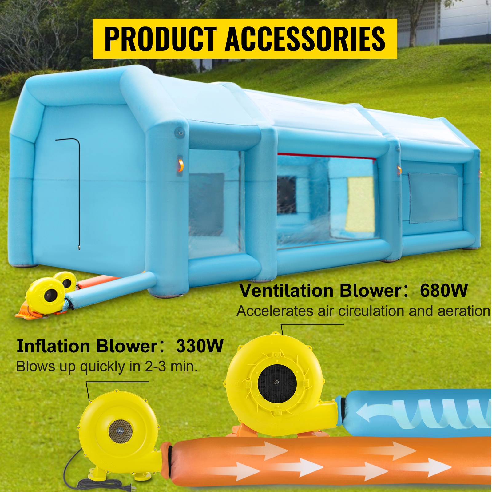 Кабіна надувної фарби - ідеальне рішення для професіоналів та саморобки. Завдяки розмірів 6x3x2.5 метрів він забезпечує простір для комфортної роботи під час фарбування автомобілів, мотоциклів та інших проектів. Виготовлений з міцної тканини Oxford 201D та ПВХ, він стійкий до бруду та пошкодження.