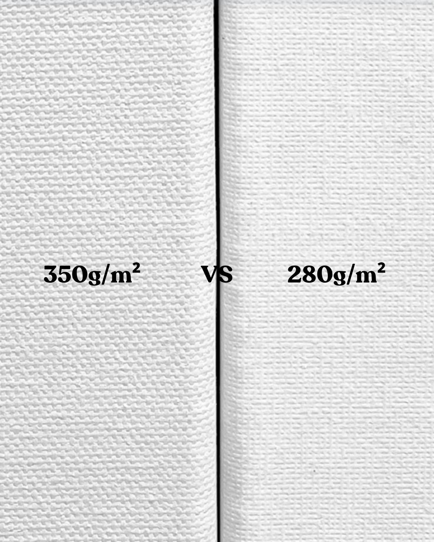 Чому 350 г/м² має значення? Вага 350 г/м² на 25% більше, ніж стандартні полотна 280 г - це означає більш товсту, міцну і міцнішу поверхню, яка краще переносить багато -ланцюгову картину та корекції.