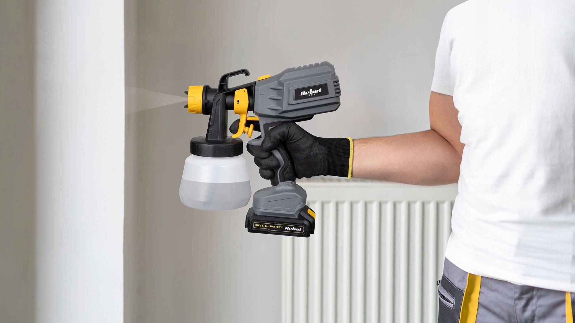 Ви збираєтеся оновити квартиру? Забудьте про пензлі, ролики та малювання куветів! Пістолет акумулятора Rebel Tool замінить усі ці аксесуари. Однією з основних переваг є регулювання ширини розпилення. Це означає, що розпилювальний пістолет буде працювати як для фарбування великих поверхонь, так і для фарбування деталей, тому ви можете використовувати його незалежно від того, хочете ви оновити колір стін, змінити колір шафи або пофарбувати паркан. Ви, безумовно, помітите різницю в точності використання фарби, коли ви хочете пофарбувати стіни, покриті структурною штукатуркою або декоративними елементами предметів, які були б втомлювальними та проблематичними традиційними.