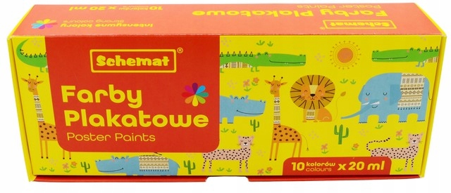 FARBY FARBKI PLAKATOWE SZKOLNE 10 INTENSYWNYCH KOL. WYDAJNE 20ML DLA DZIECI
