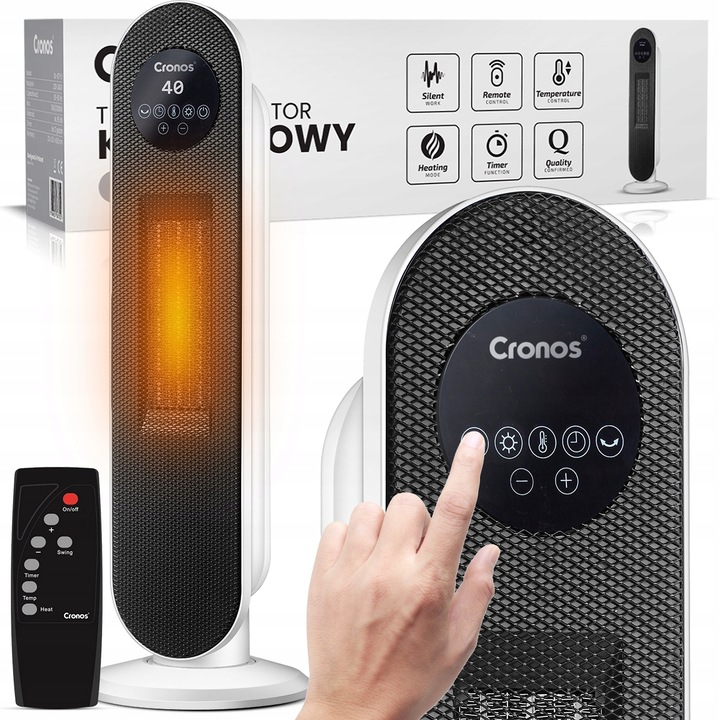 Ви можете керувати всіма функціями тепловентилятора за допомогою зручного, елегантного маленького пульта дистанційного керування. Насолоджуйтеся зручністю використання обігрівача Cronos, лежачи на дивані або сидячи за столом з гостями!