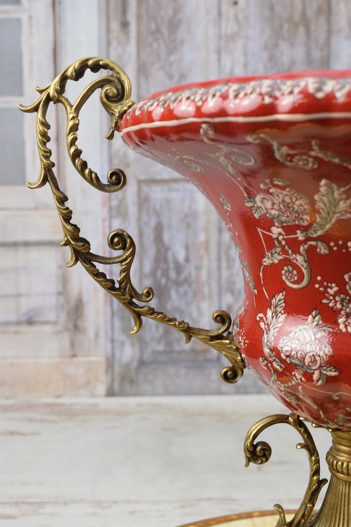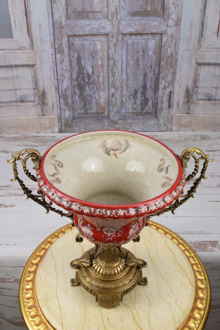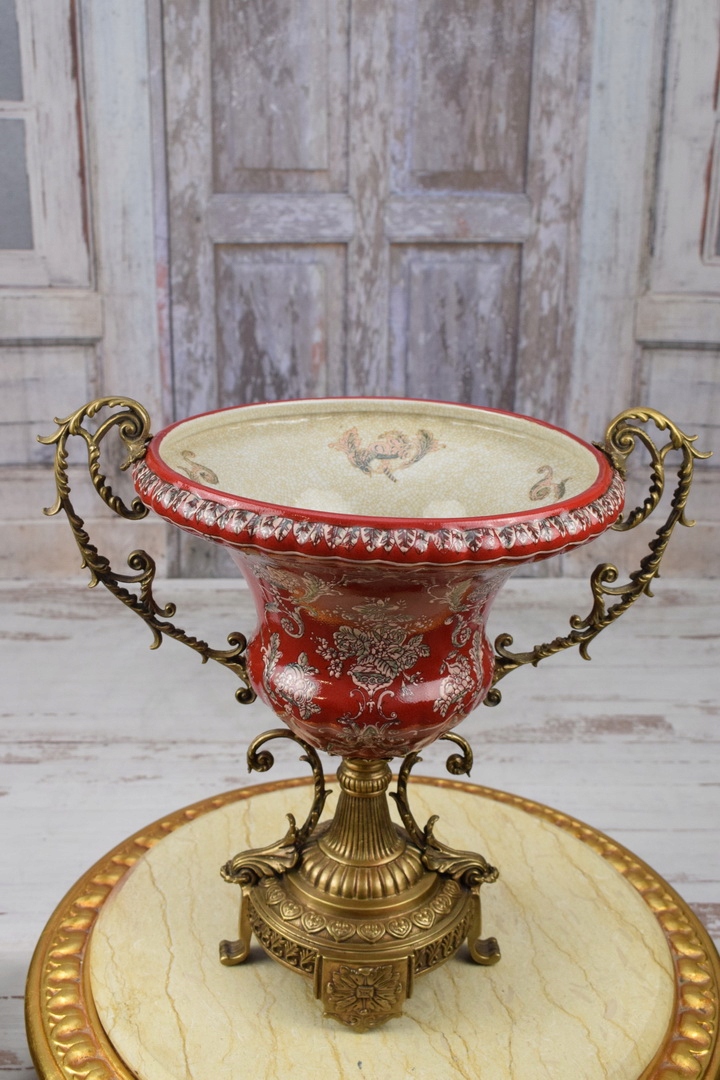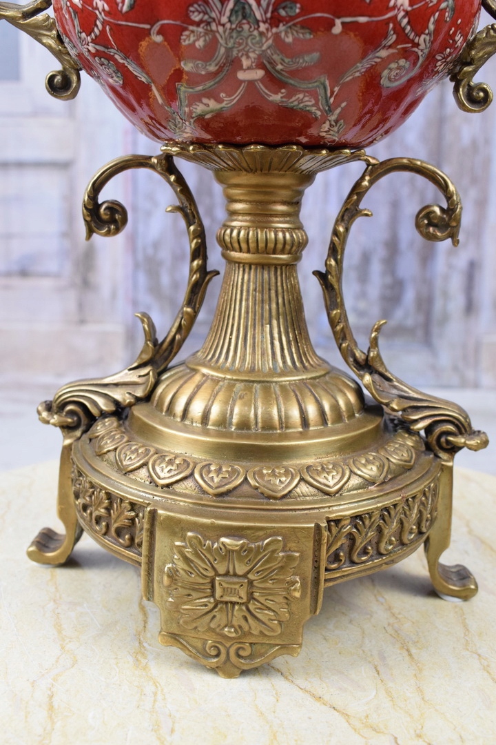 ФАРФОРОВА ВАЗА ЧАШКА АМФОРА - ЧЕРВОНА СЕКЦЕСІЯ - бронзова оправа
