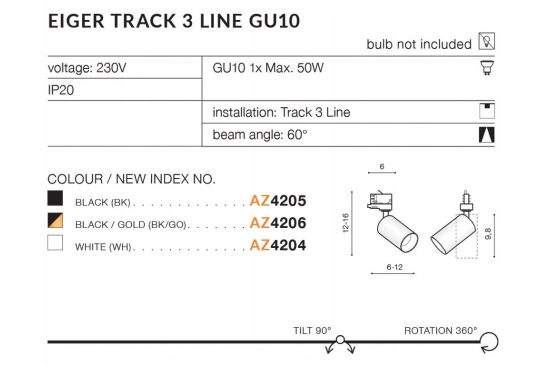 Лінія Eiger track 3 — це невелика циліндрична рамка з місцем усередині для одного джерела світла. Вся річ зроблена з міцного металу. На нашому веб-сайті світильник доступний у трьох варіантах кольору: суцільний чорний або білий, а також у варіанті поєднання чорного з модним зараз золотом.