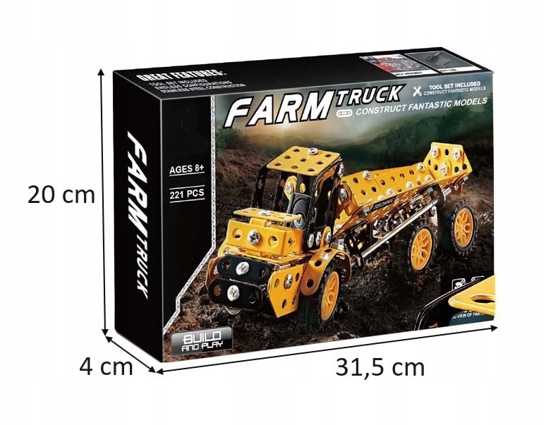 FARM Wagon DUMPER СКЛАДНА МОДЕЛЬ ЖОВТИЙ МЕТАЛЕВИЙ АВТОМОБІЛЬ 221 елемент