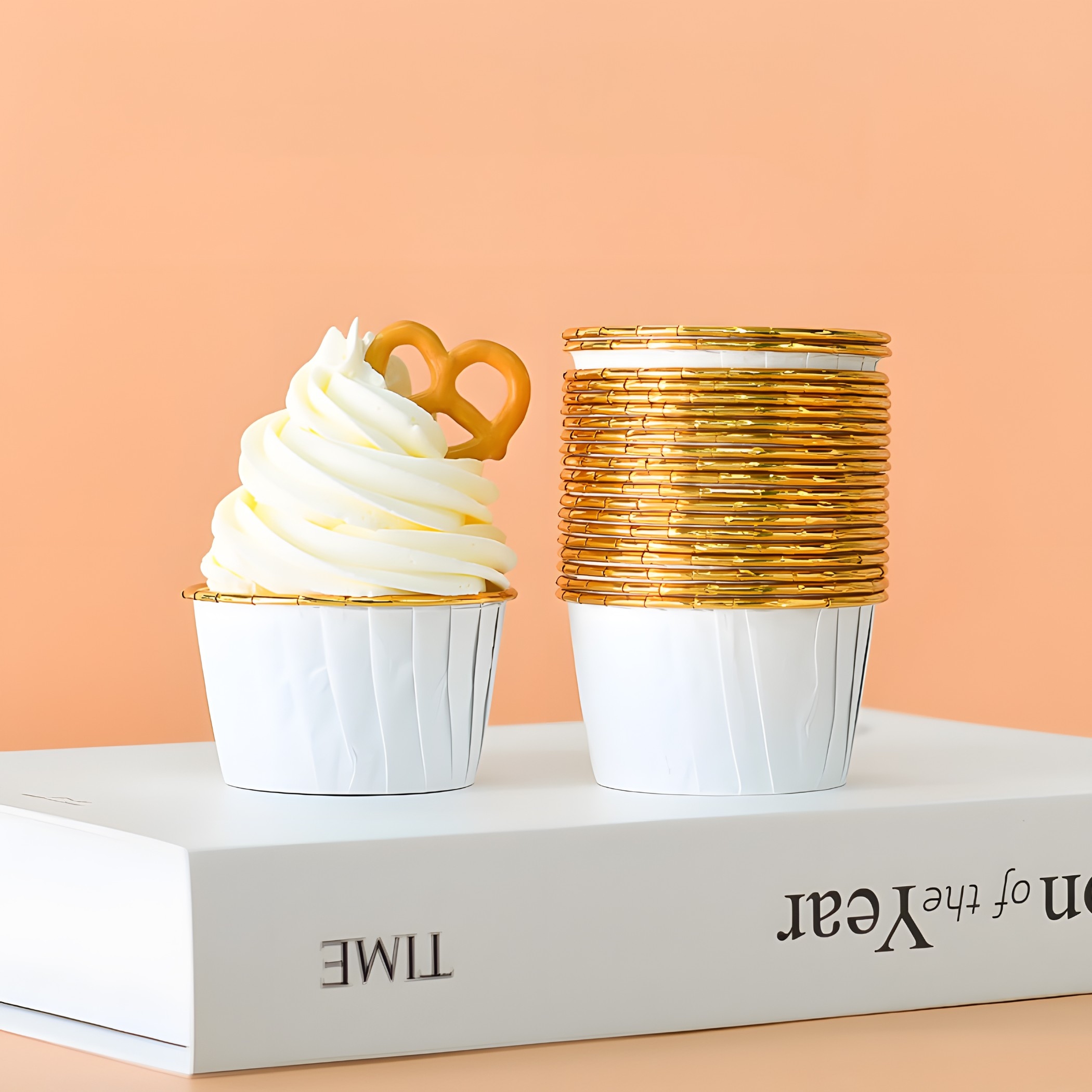 Форми ідеально підходять для випікання кексів або мафінів, а також для зберігання печива, цукерок, десертів, бісквітів, фруктів тощо. Кекси, випікані в золотистих формах, ідеально підходять як прикраси на весіллях, ювілеях, днях народженнях і святах дитини. Ці форми практичні та естетичні, додають шарму будь-якій події, пропонуючи різноманітні можливості для їх використання.