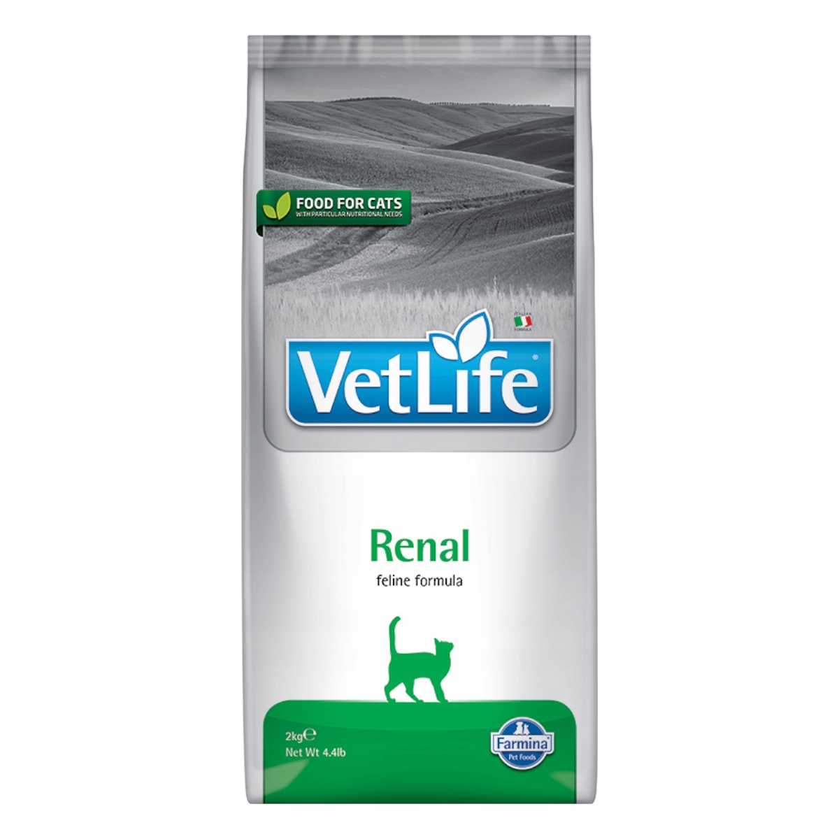 Farmina Vet Life Renal повноцінний дієтичний корм для кішок, що підтримує функцію нирок у разі хронічної або тимчасової ниркової недостатності.
