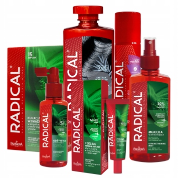 Radical - це справжній прорив у боротьбі з випаданням волосся. Гарантує потрійну дію: помітно зміцнює волосся, подовжує життєвий цикл волосся, ефективно зменшуючи випадіння та витончення волосся, а також стимулює ріст нового волосся. Інтелектуальна формула, заснована на синергічній дії спеціально підібраних активних інгредієнтів у високих концентраціях, забезпечує вражаючий зміцнюючий ефект, ефективно зменшує випадання та стимулює ріст волосся.