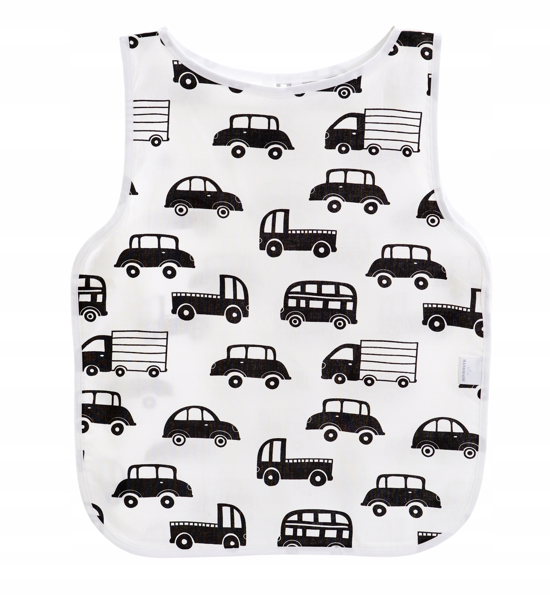 - з боків пришиті еластичні стрічки (забезпечують швидке та ефективне надягання та зняття, наприклад, під час їжі в дитячому садку),