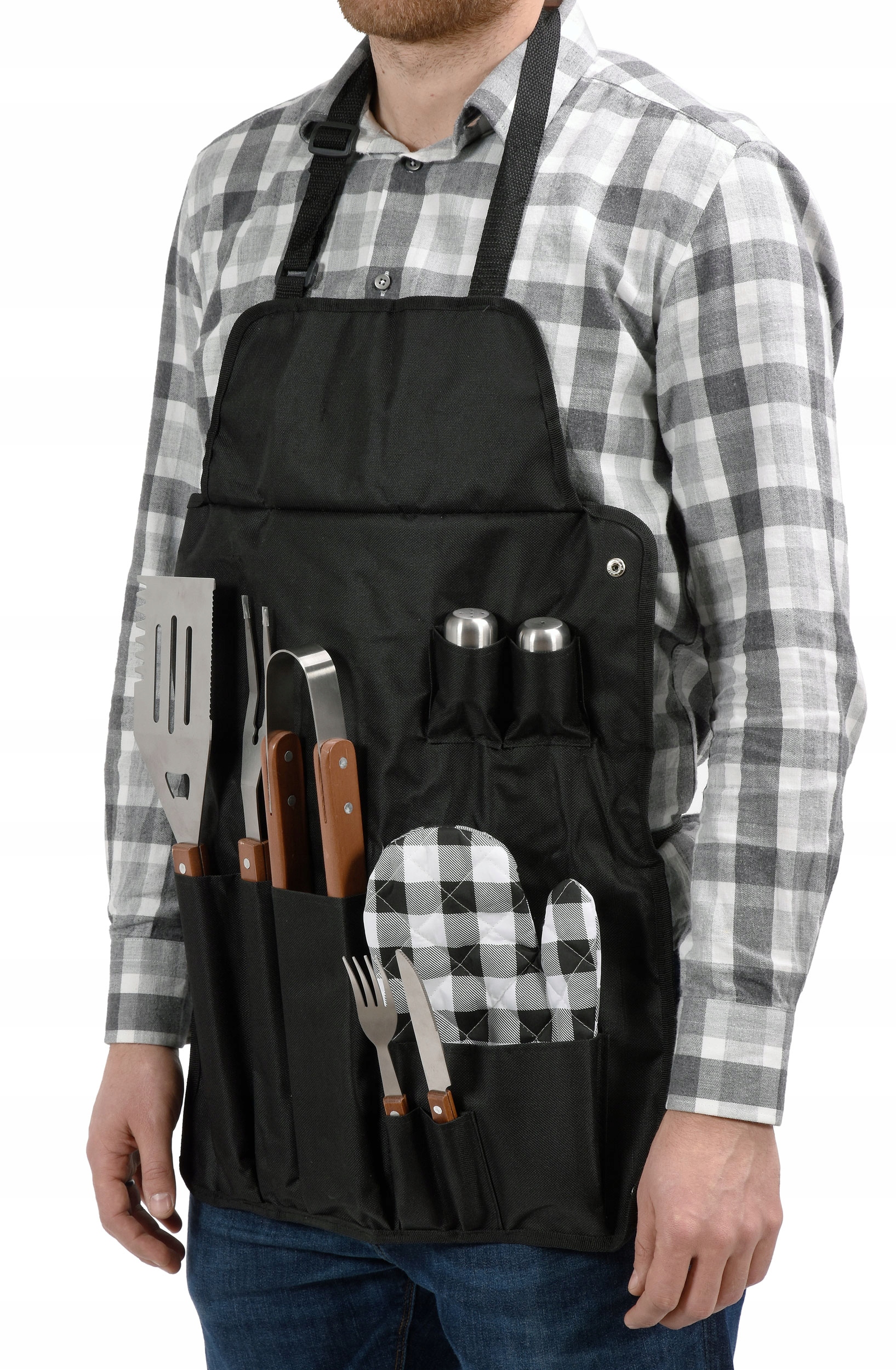 Обов'язковий набір для всіх любителів грилю. У спеціально розробленому фартуху посуд для барбекю завжди під рукою, а під час зберігання фартух служить кришкою.