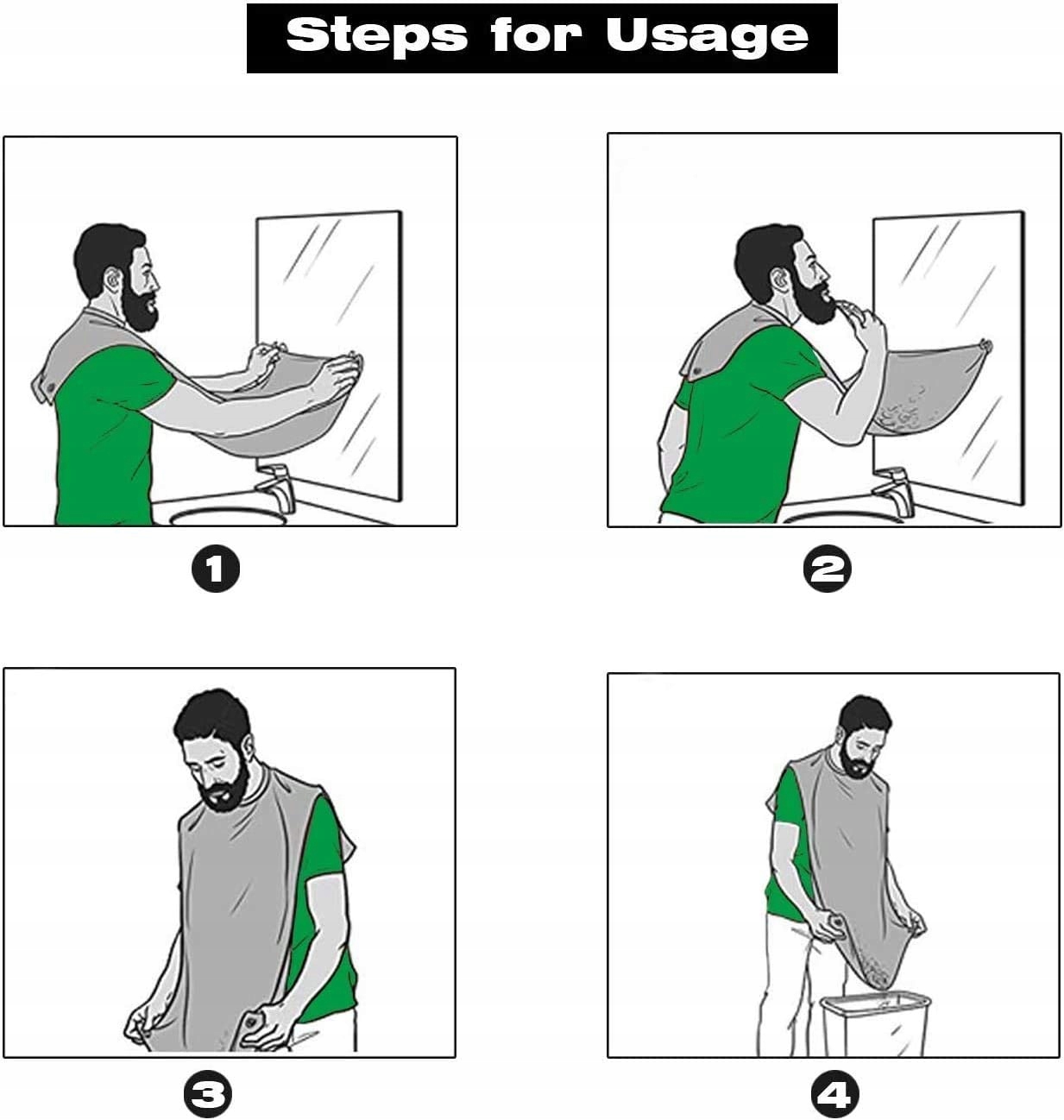 - Фартух для бороди для чоловіків, які голяться. Прикріпіть шийні ремені, візьміться за нижні краї фіксатора бороди та прикріпіть присоски до дзеркала.