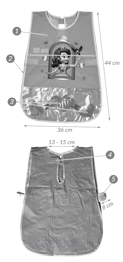 Форма фартуха забезпечує легке та швидке одягання та роздягання дитини.