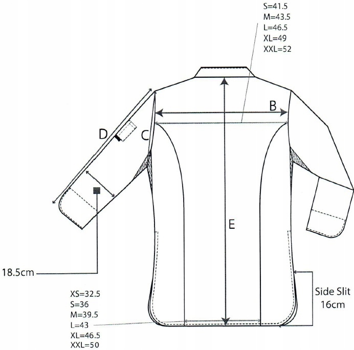 Призначений для роботи в закладах громадського харчування. Щоб зберегти свіжість під час роботи, євентиляційні отвори тасітчасті панелі MeshAir™, розташовані під руками. Сорочка має розрізні манжети та чотири ряди відстібаються чорних ґудзиків. На рукаві є додаткова кишеня. Одяг з дуже міцної тканини діагонального плетіння, стійкого до зміни кольору. Тканина має усадку, що гарантує збереження розміру після багатьох прань.
