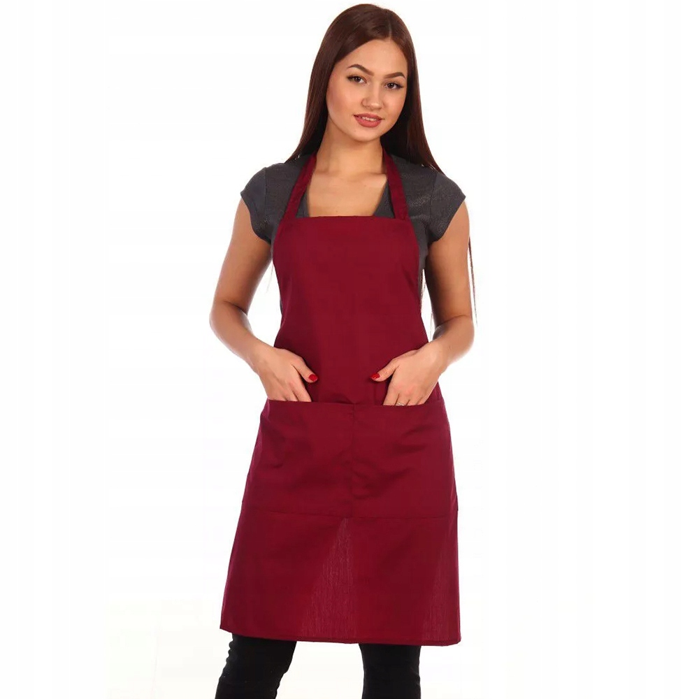 - ззаду, ідеально сидить на будь-якій фігурі. Фартух має дві просторі кишені спереду, і весь виготовлений із матеріалу, стійкого до багаторазового прання.