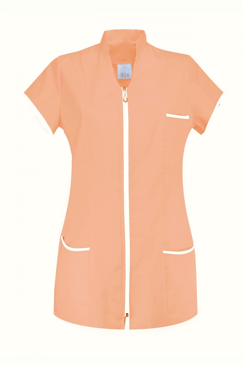 Короткий жіночий медичний халат. Застібається на блискавку, оброблений коміром-стійкою