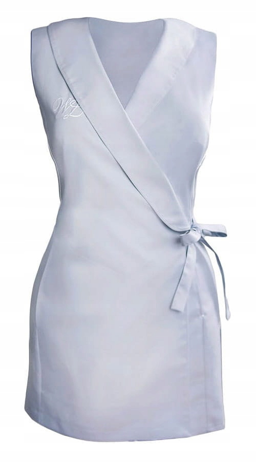 Практичний косметичний фартух світло-сірого кольору. Має дві глибокі кишені. Виріз-конверт і зав'язка на талії дозволить підійти на будь-яку фігуру. Елегантно оброблений відкладним коміром. Зручний дизайн підкреслить жіночу фігуру і забезпечить комфорт при роботі. Виготовлений з високоякісної тканини, яка забезпечує достатній потік повітря. Надзвичайно м'який на дотик, легко прати і прасувати.