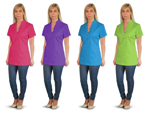 Верх фартуха елегантно завершується коміром-стійкою. Короткий рукав робить фартух не сковуючим рухів і дуже зручний.