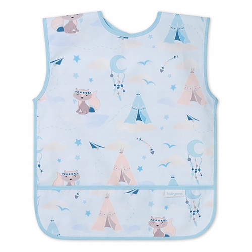 Зніміть усі захисні пристрої, які можуть бути небезпечними для дитини. Продукт слід перевіряти перед кожним використанням. При перших ознаках пошкодження або зносу викидайте. Завжди використовуйте під наглядом дорослих. Товар не є іграшкою. Ми рекомендуємо зберегти упаковку для довідкових цілей. Зберігайте упаковку в недоступному для дітей місці. Технічні характеристики Матеріал: 100% поліестер, ПУ покриття Вік дитини: 2-4 роки Вік дитини: Фартух доступний в двох розмірах: для дітей від 6 місяців до 2 років і від 2 років до 4 років - відвідування ясел і дитячого садка. Розмір виробу: 34 × 42 см. Розмір упаковки: 37 × 52 см.