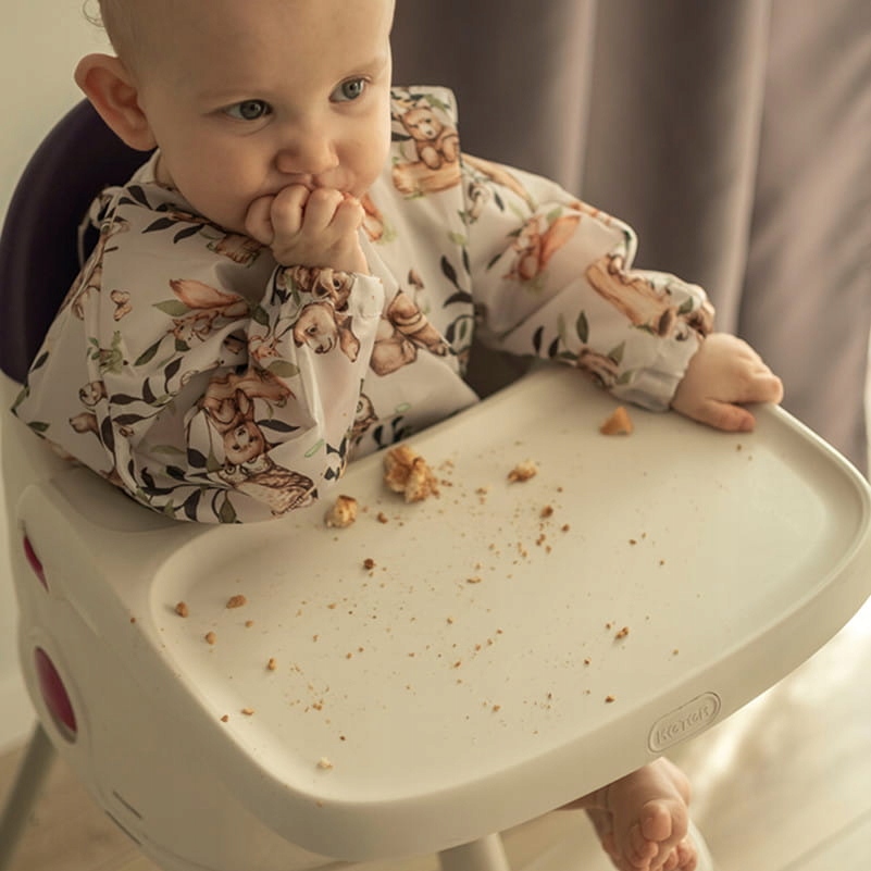 Цей чарівний нагрудник захистить одяг вашої дитини під час їжі, малювання або інших ігор, які допомагають їй навчитися самостійності. Нагрудник має велику виступаючу кишеню, яка забезпечить комфорт під час їжі та замовлення.