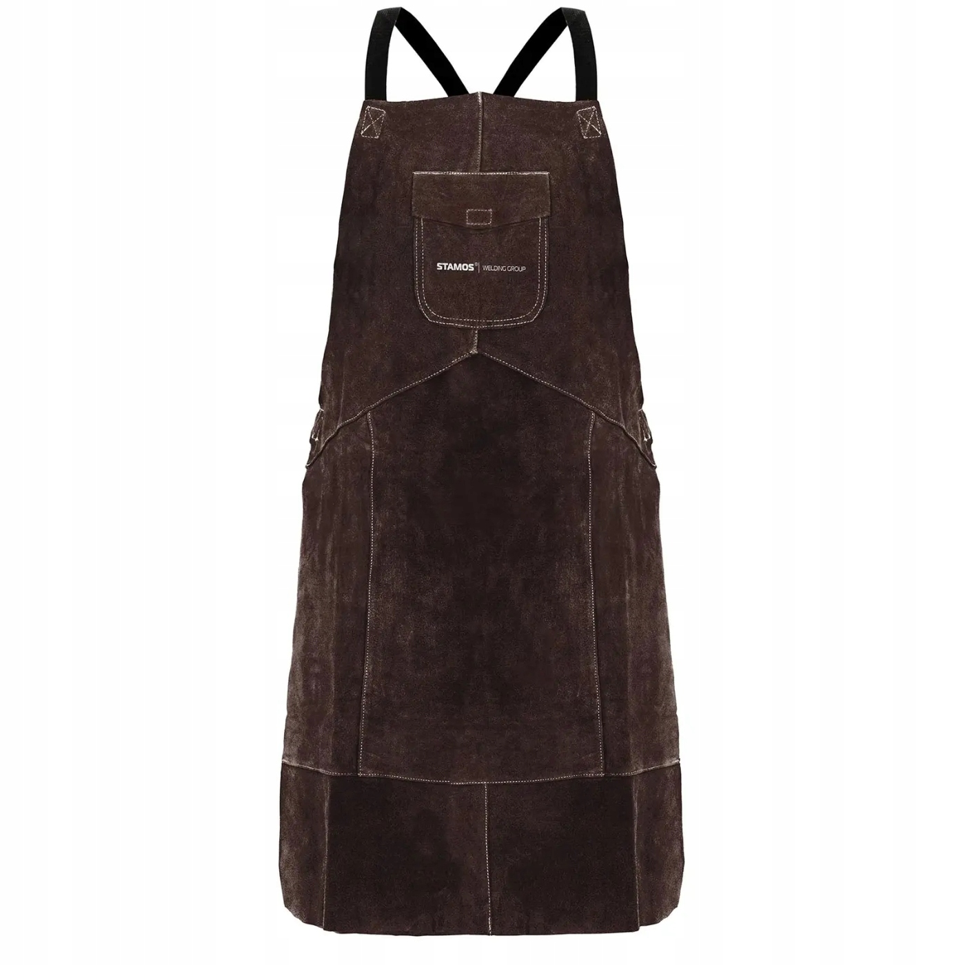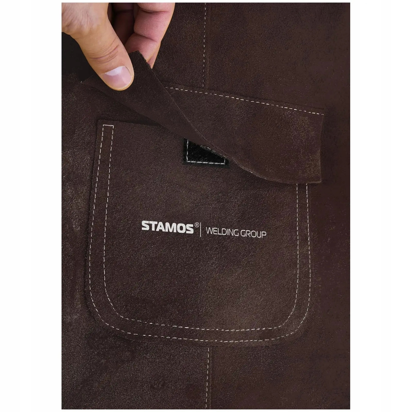 Довговічний фартух Stamos Welding Group забезпечується високоякісними матеріалами. Він виготовлений з коров'ячого спилка, який є міцним і має чудову стійкість до стирання та високої температури. Шви з міцних ниток вогне- і термостійкі. Вони плавляться лише при температурі 426°С. Тому вони кращі за поліестерові чи нейлонові.