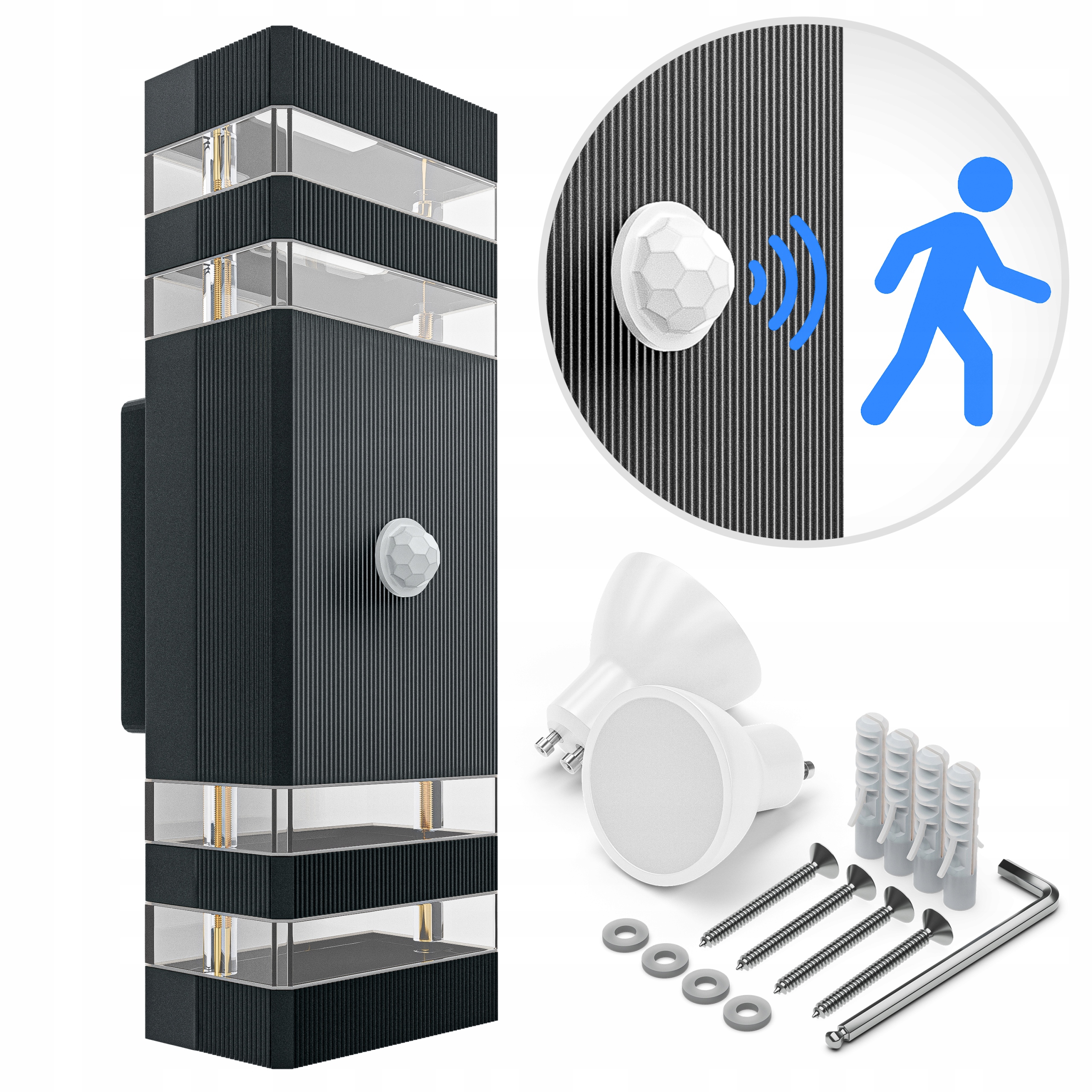 ФАСАДНА ЛАМПА З ДАТЧИКОМ РУХУ АЛЮМІНІЄВА АНТРАЦИТ IP65 + 2xLED GU10