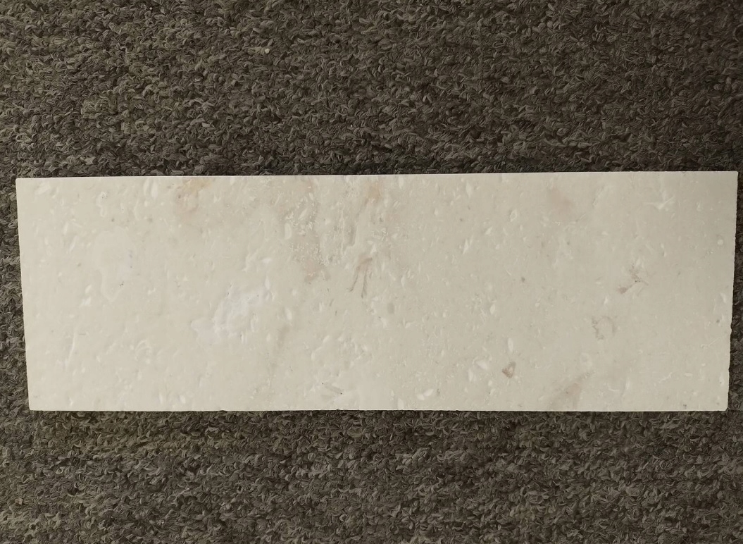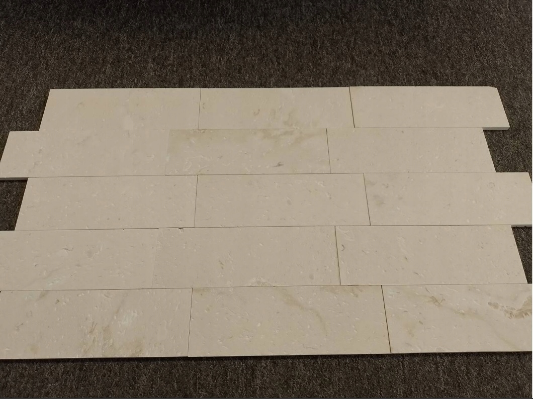 Яскрава цегла формату 10х30 см з білого вапняку.