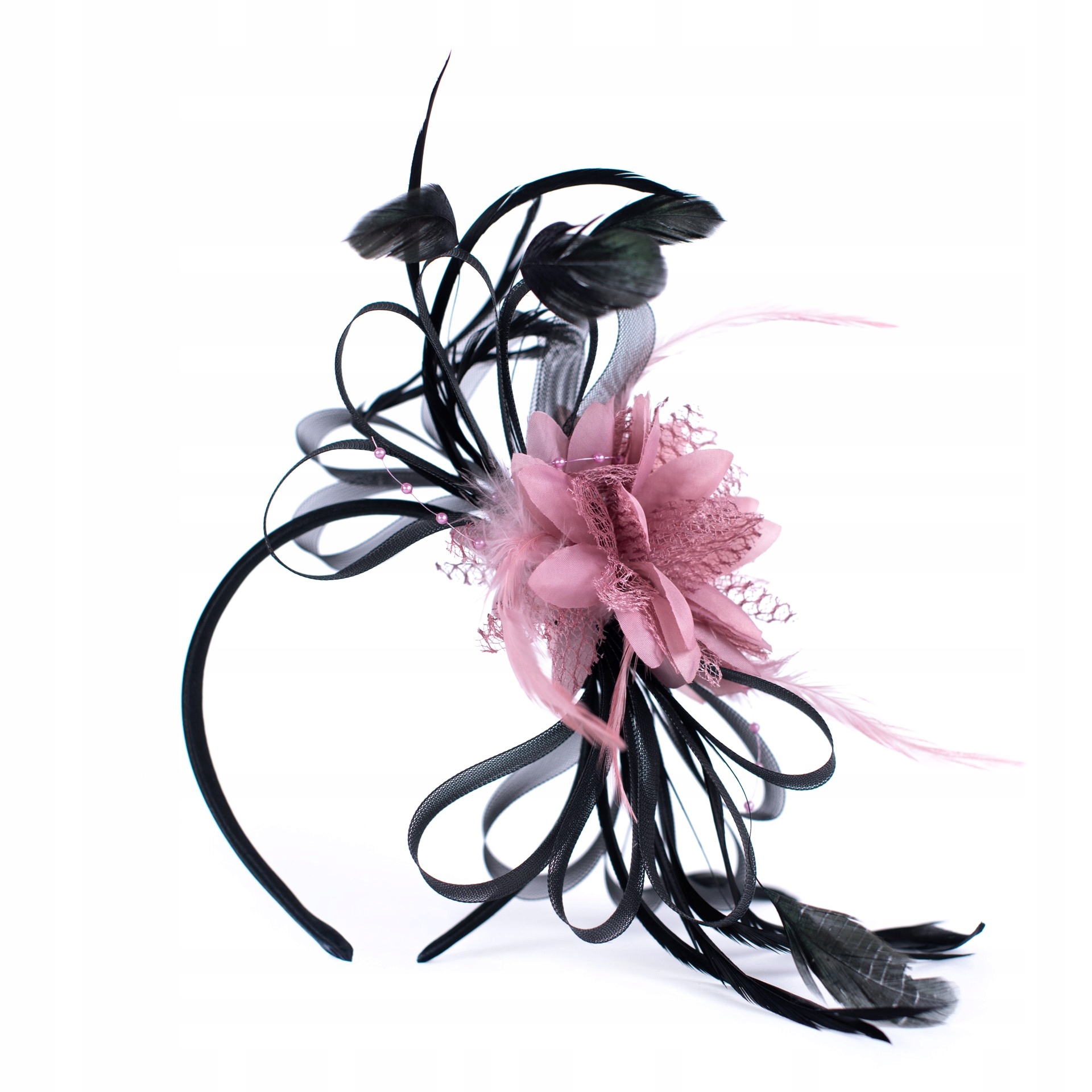Елегантний чарівник з пір'ям, бантом і багато прикрашеною квіткою.