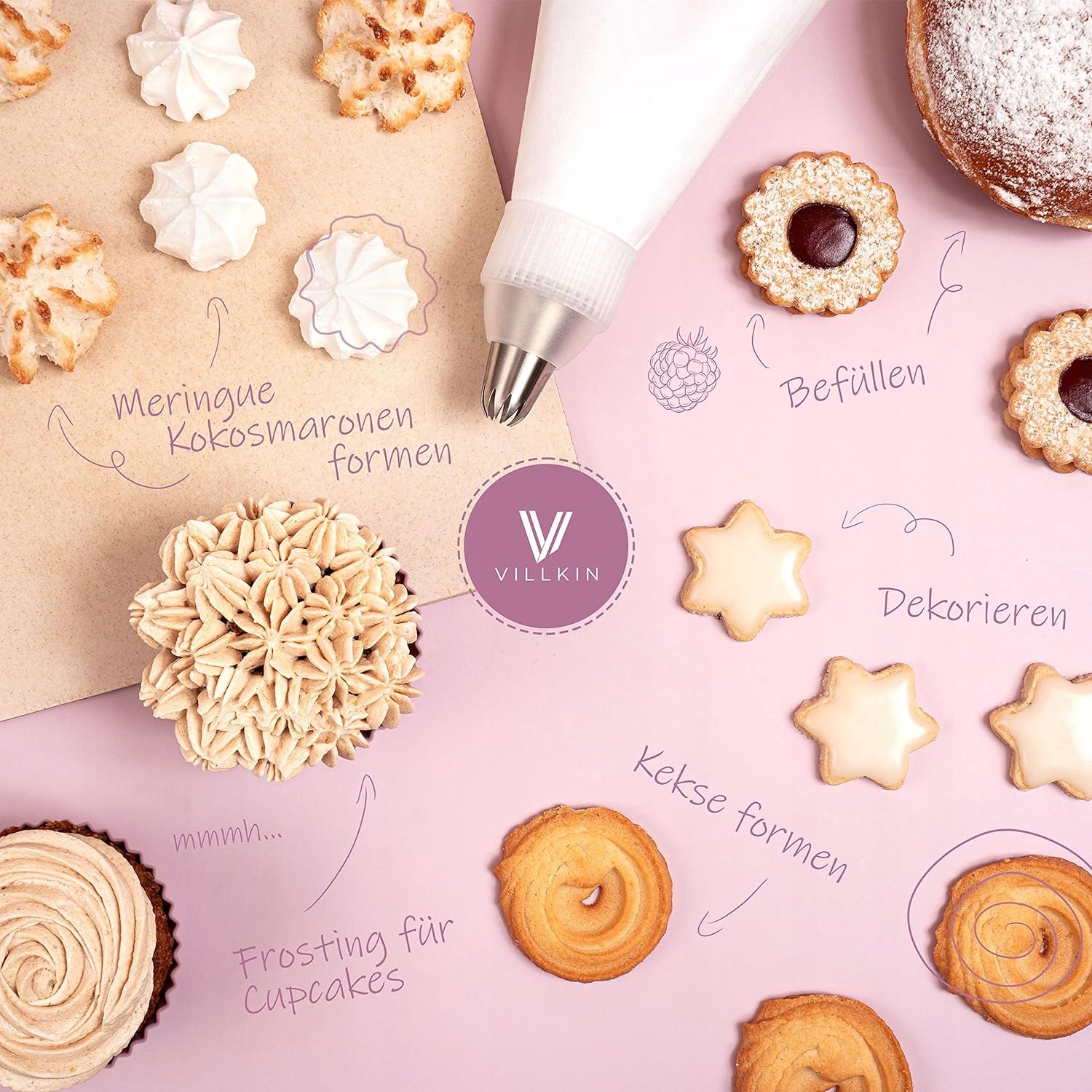 - Для кожної випічки - з набором кондитерських мішків Villkin ви ідеально підготовлені для тортів, тортів, кексів, печива та багатьох інших. інша випічка. Багато різних рукавів і великий мішок дозволяють легко працювати та гарно декорувати випічку.