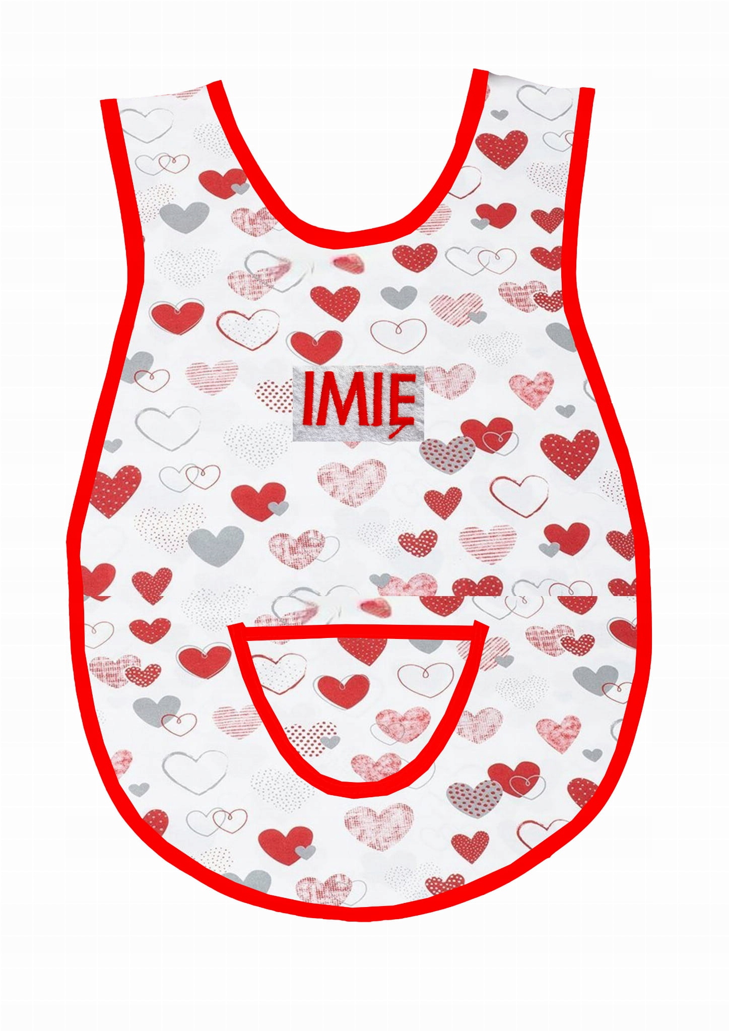 Фартух дитячий садок з червоно-сірими сердечками в крапку, модель 628