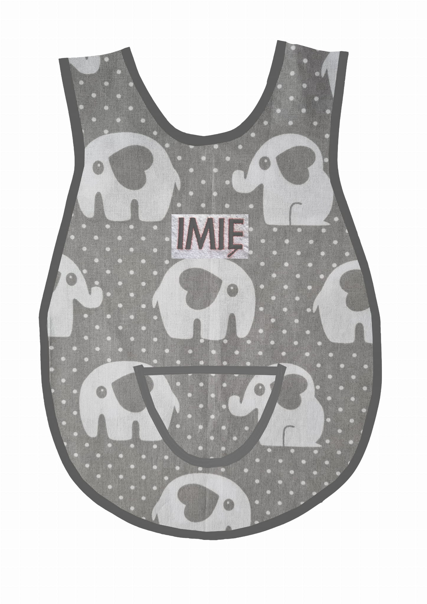 Фартух дитячого садка в формі слона на сірому тлі