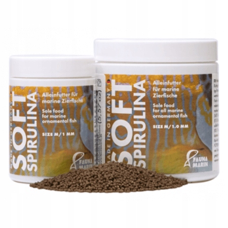 Повна і повна їжа для морської риби. М'яка спіруліна така ж м'яка, як натуральний планктон, що значно полегшує споживання риби. Містить 10% добавок алое та спіруліни, що робить його ідеальним для риби, яка віддає перевагу рослинній їжі, таких як танги.