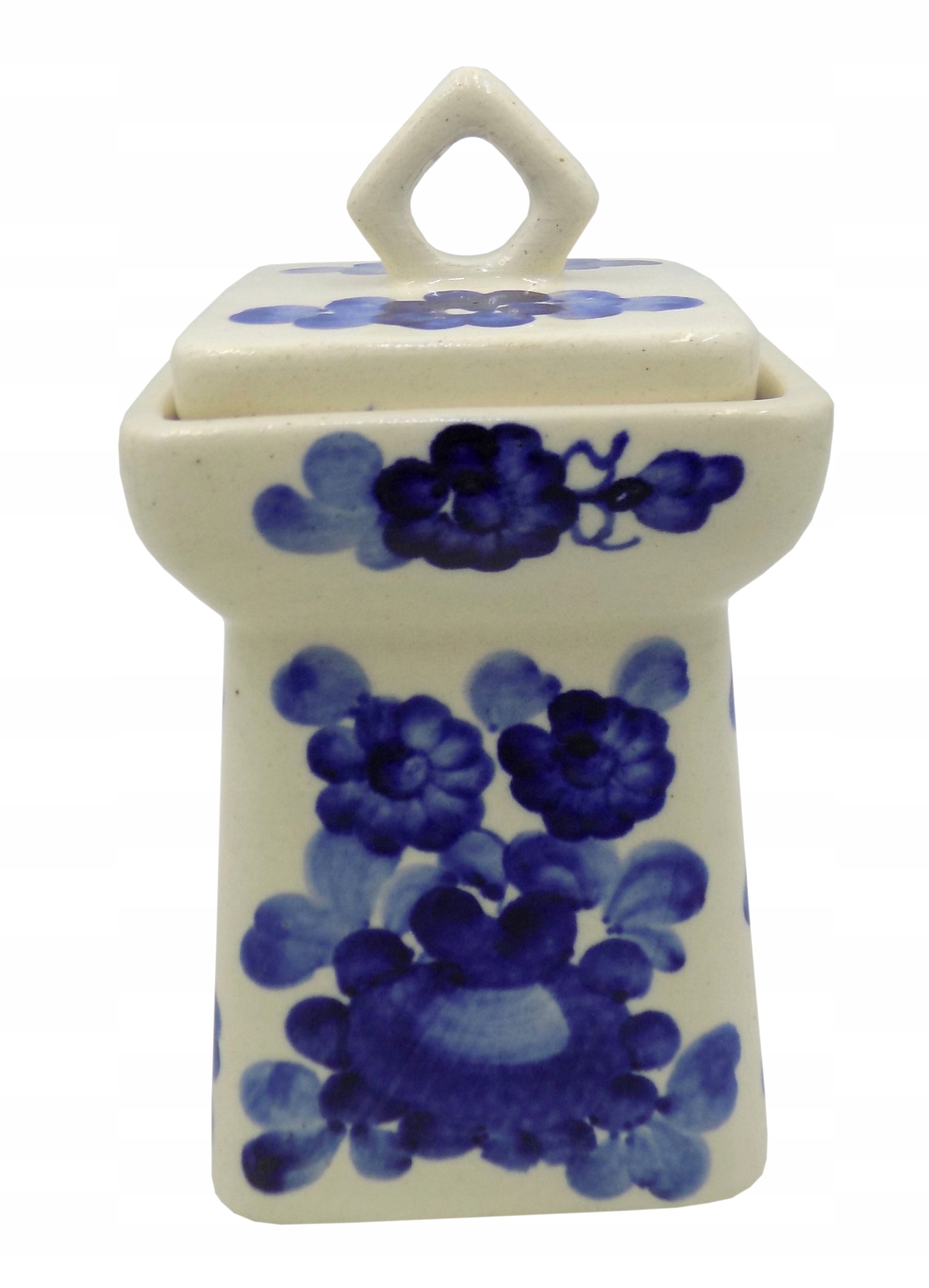 Фаянсова банка з Влоцлавека 1980-х років. Підписано. Ручний розпис. Розміри; висота 16 х 9 х 9 см. Сліди використання. Стан речі та місце ремонту вказано на фото.