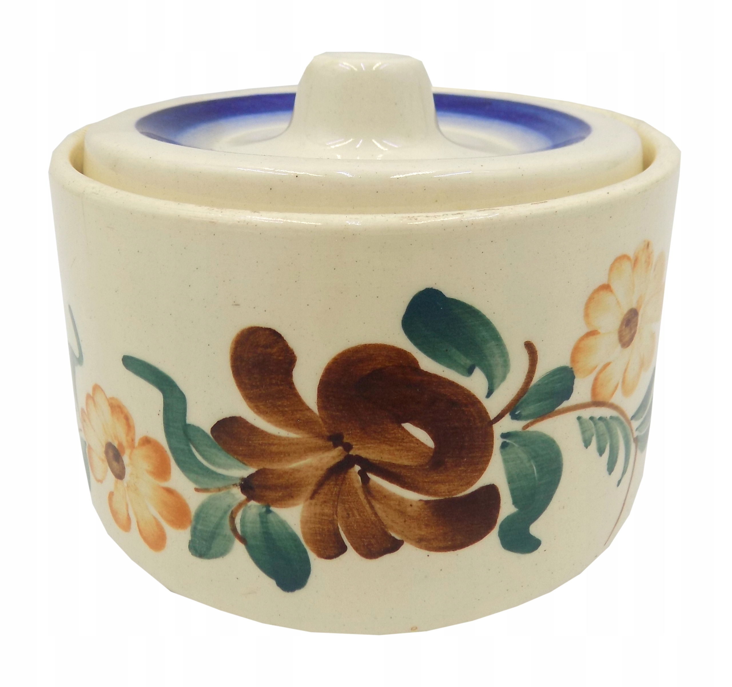 Фаянсова жерсть/маслобойка з Влоцлавека 1970-1980-х років. Підписано. Ручний розпис. Розміри; висота 11 х 12,5 см.
