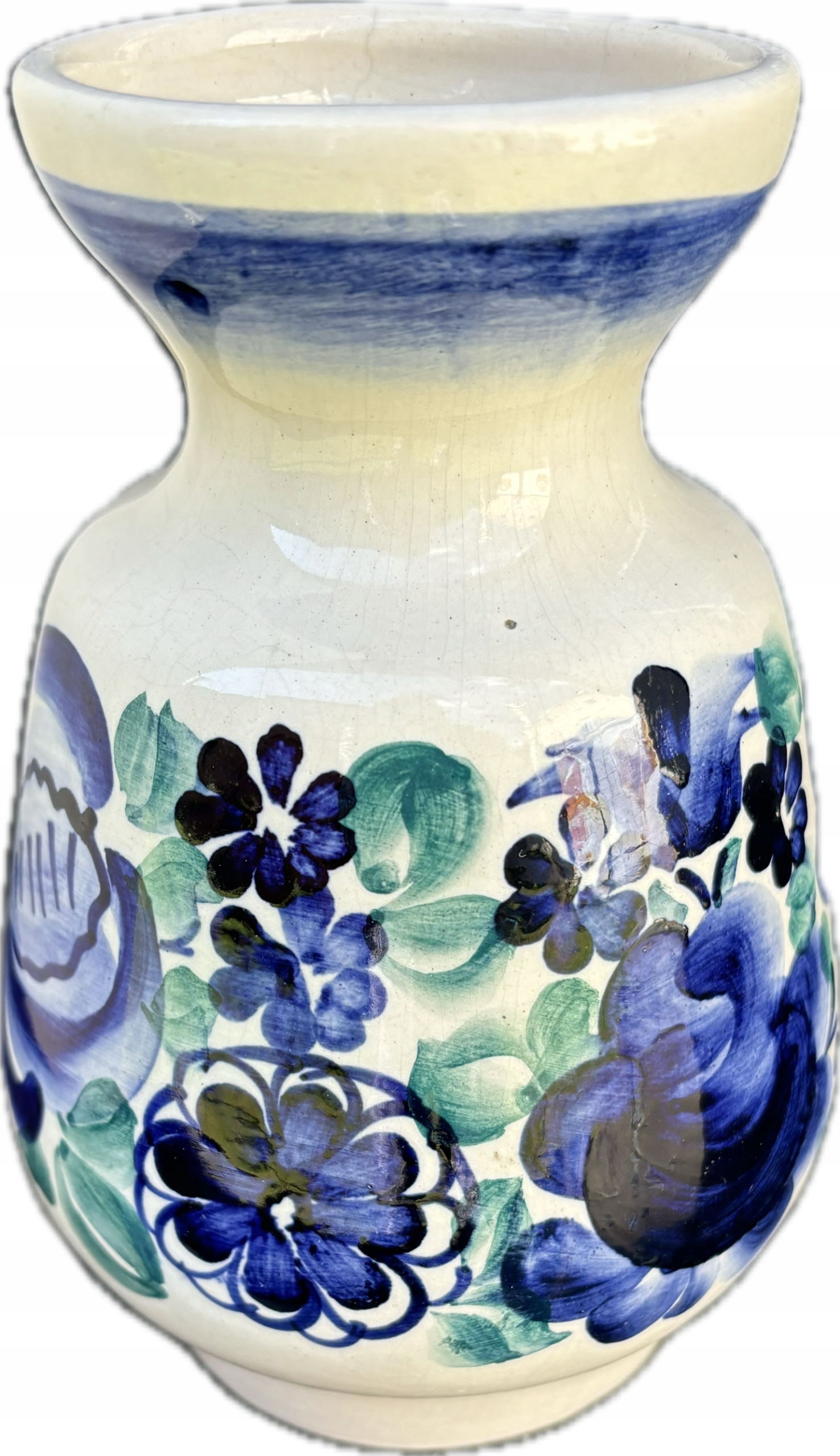 Ваза з фаянсу з Влоцлавека 1970-1980-х років. Підписано. Ручний розпис. Розміри; висота 14,5 х 9 см. Стан вази видно на фото. На краю вази є подряпина.