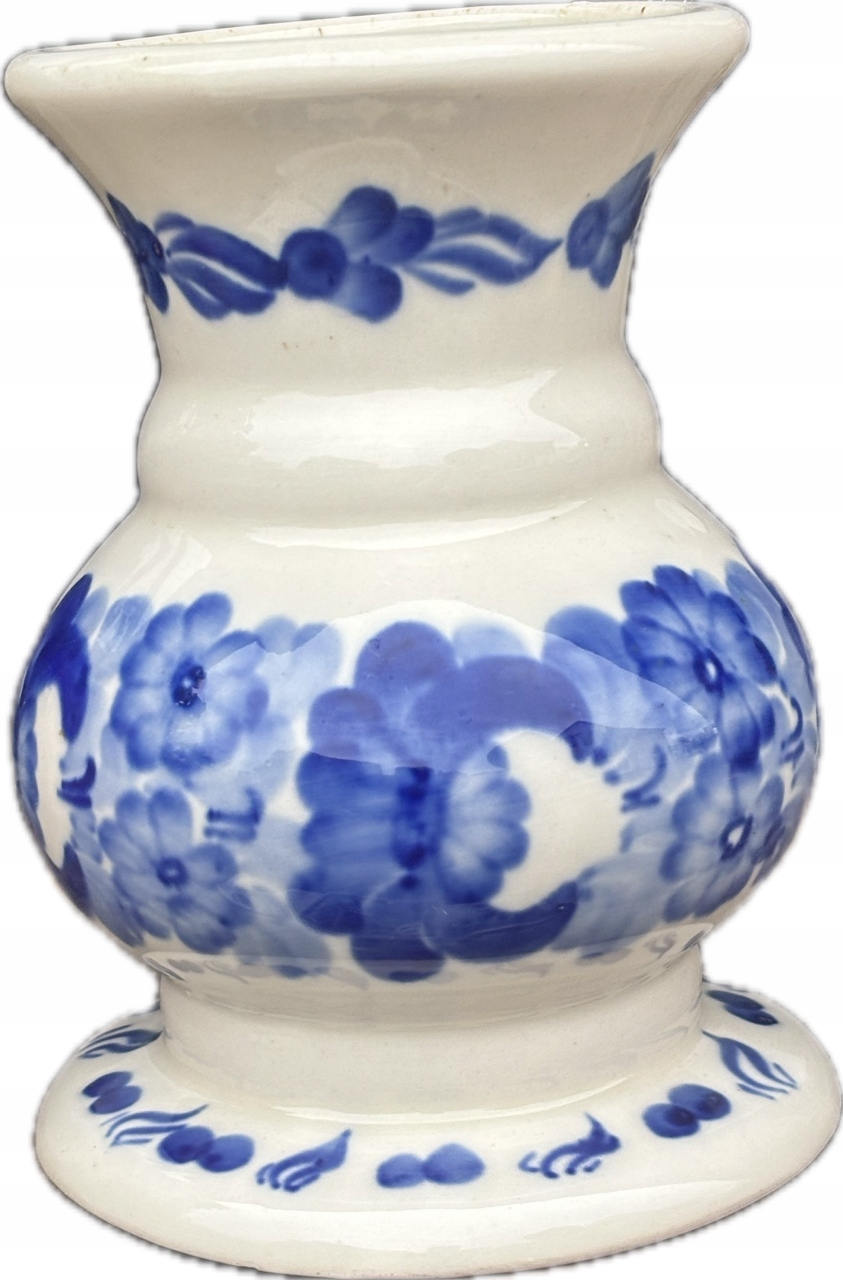 Ваза з фаянсу з Влоцлавека 1970-1980-х років. візерунок 1605. Підписано. Ручний розпис. Розміри; висота 15,5 х 11 см. Незначні виробничі дефекти емалі. Незначні сліди використання.