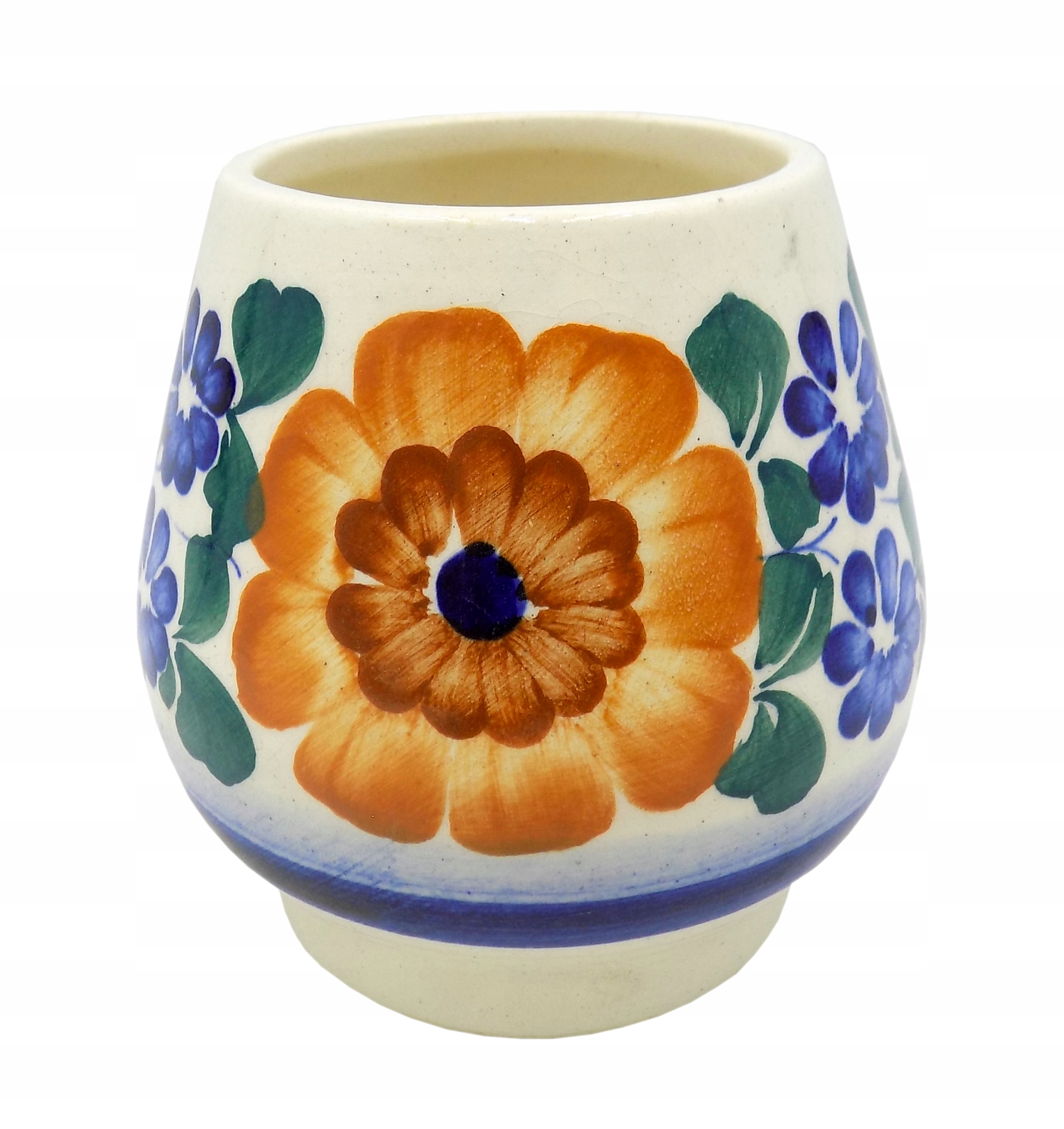 Ваза з фаянсу з Влоцлавека 1970-1980-х років. Підписано. Ручний розпис. Викрійка 1383. Розміри; висота 9,5 х 9,5 см. Стан вази видно на фото.