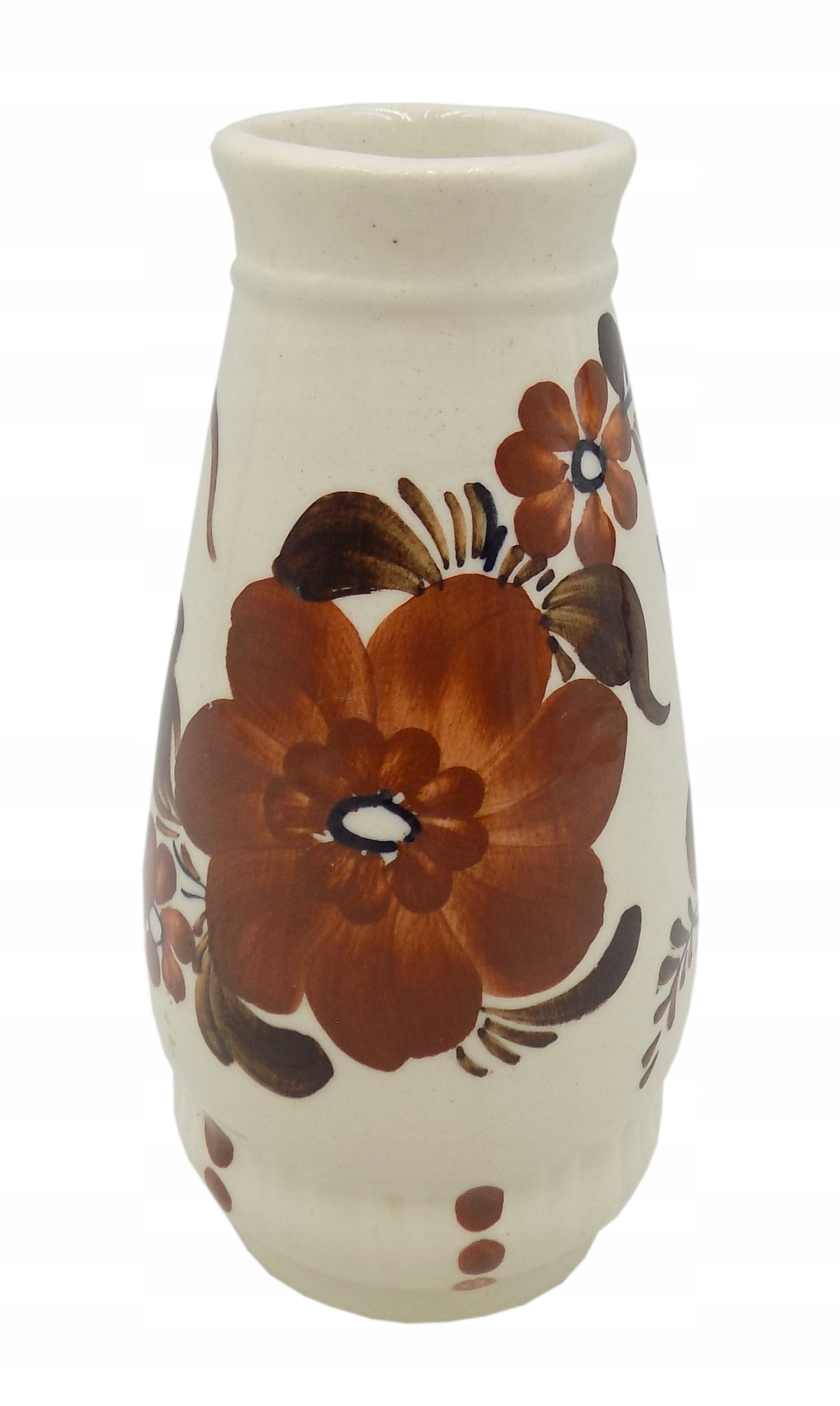 Ваза з фаянсу з Влоцлавека 1970-1980-х років. Підписано. Ручний розпис. Розміри; висота 14 х 7 см. Сліди використання всередині вази.